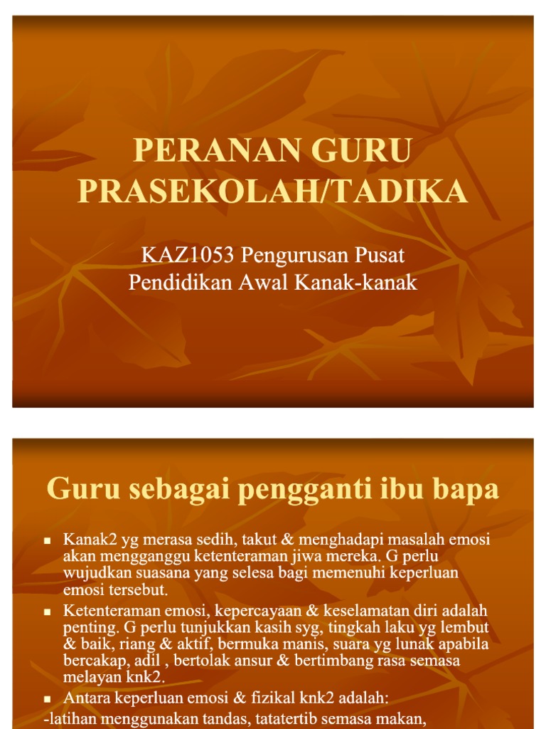 Pengurusan Pusat Pendidikan Awal Kanak Kanak Peranan Guru Kaz1053 Pdf